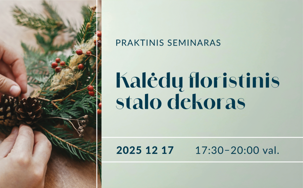 Karaliaus Mindaugo profesinio mokymo centras kviečia į praktinį seminarą „Kalėdų floristinis stalo dekoras“