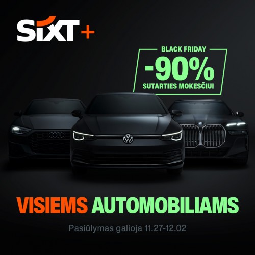 Black Friday be stabdžių! VISI modeliai su 90% nuolaida sutarties mokesčiui. Taip, visi. Ir ne – mes nejuokaujame. Pasiūlymo SIXT+ automobilio prenumeratai ieškok