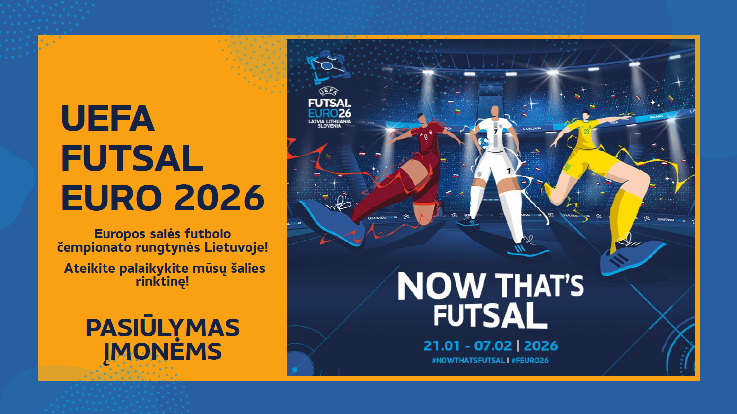 Specialų pasiūlymą įmonėms į UEFA FUTSAL EURO26 Lietuvoje rasite ČIA.