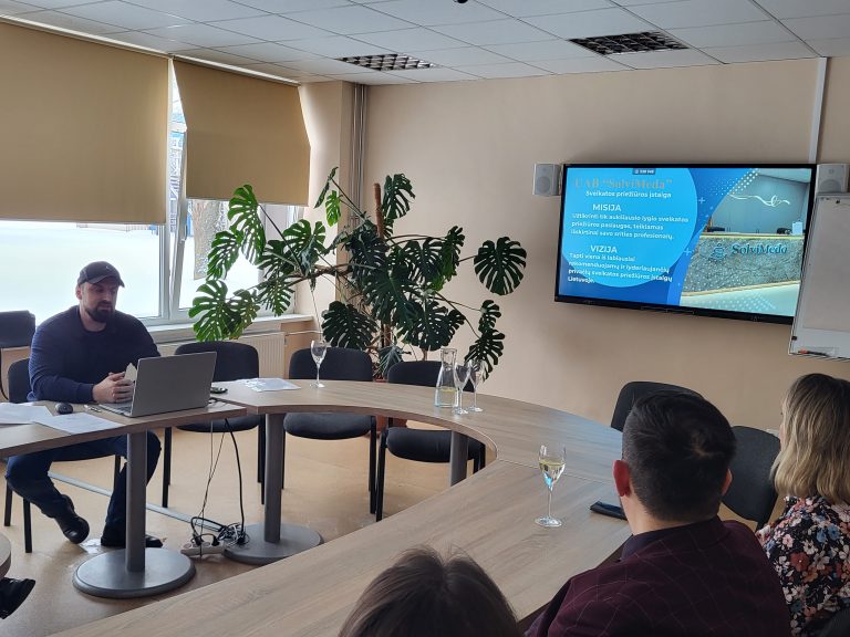 Susitikimo metu UAB „Solvimeda“ ir VšĮ „ScarFa“ pristatė savo veiklas bei teikiamas paslaugas, supažindindamos filialo narius su kompetencijomis ir galimomis partnerystėmis.