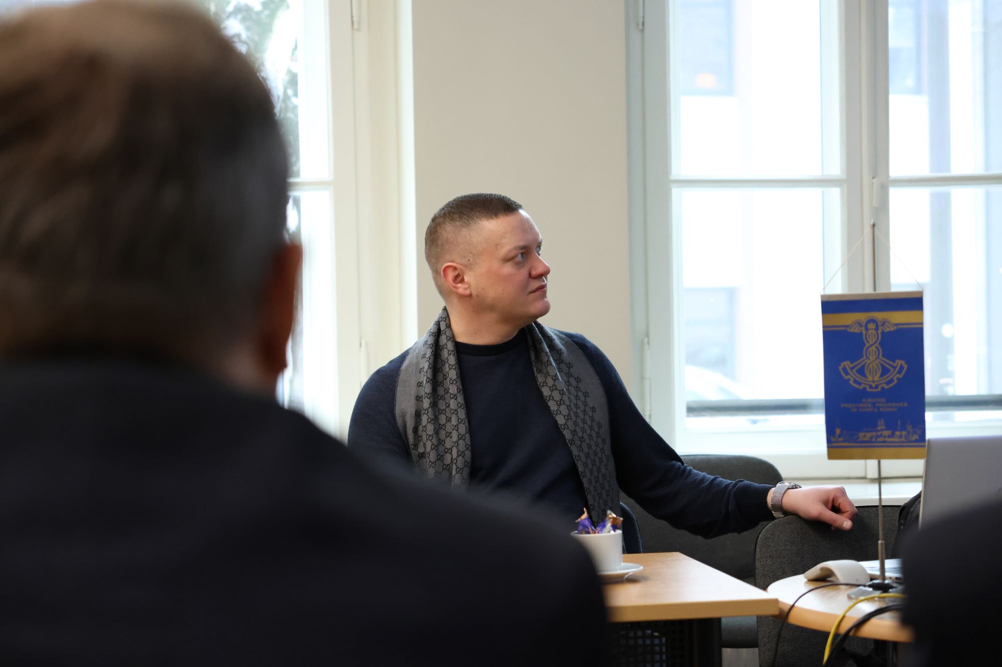 KPPAR prezidentas Zigmantas Dargevičius pasveikindamas svečią paminėjo, kad rūmų bendruomenė labai vertina susitikimus su Lietuvos banko vadovais, kurių turėjo ir ankstesniais metais.