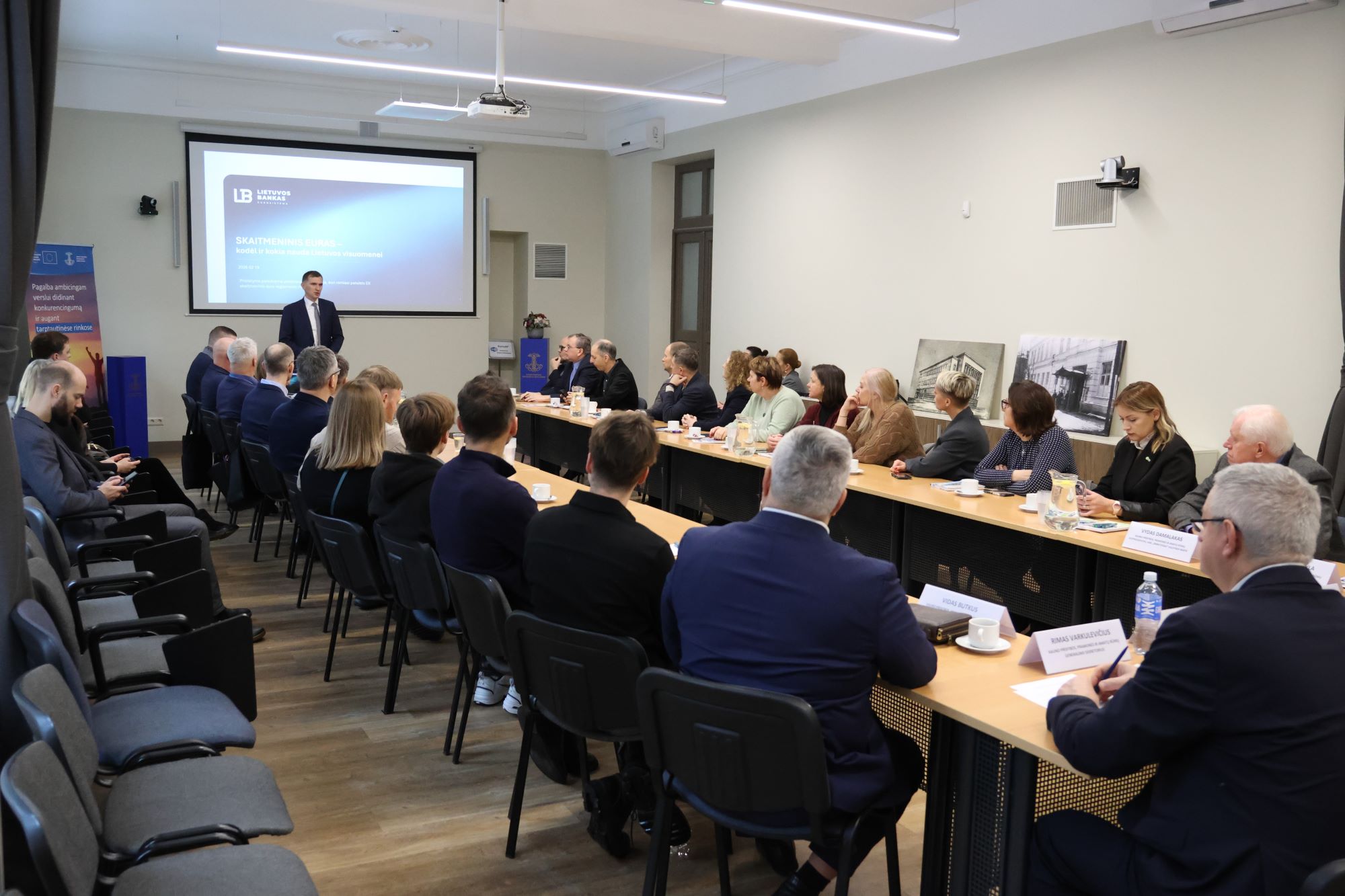 Renginio pradžioje Z. Dargevičius pasidalijo įžvalgomis apie šiandieninę verslo finansavimo situaciją Lietuvoje. Jis atkreipė dėmesį, kad skolinimas verslui mūsų šalyje išlieka vienas brangiausių Europoje, o skirtumas tarp Lietuvoje taikomų palūkanų ir euro zonos vidurkio tebėra 2019 metų lygio. Didesnės verslo skolinimosi palūkanos šiuo metu fiksuojamos tik Latvijoje. Kalbėdamas apie platesnį kontekstą, jis pabrėžė, kad kapitalo prieinamumas verslui vis dar yra ribotas, todėl tiek Lietuvos banko, tiek Vyriausybės sprendimai turėtų būti orientuoti į ilgalaikį stabilumą ir galimų ateities iššūkių suvaldymą.