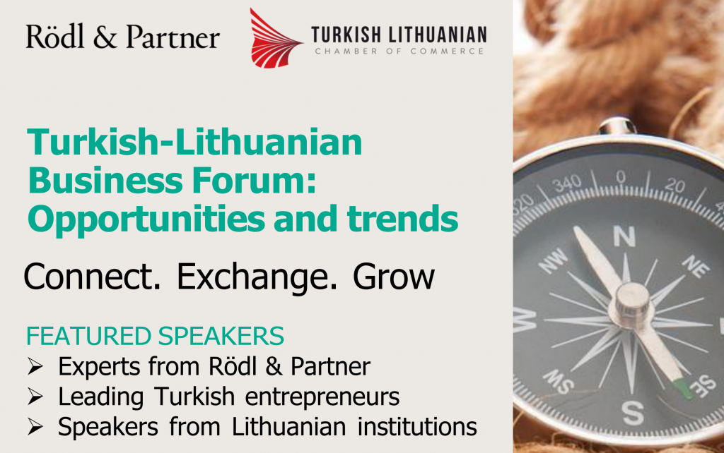 Kviečiame dalyvauti pirmąjame Turkijos–Lietuvos verslo forume, kuris vyks 2025 m. spalio 7 d. Vilniuje, viešbutyje „Novotel Vilnius Centre“.