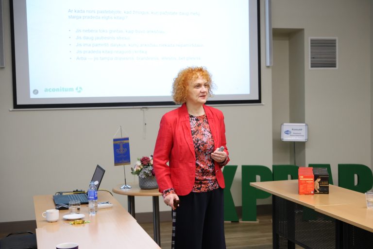 Seminarą vedė dr. Rima Balanaškienė – žinoma biomedicinos ir epigenetikos tyrėja, jau daugelį metų analizuojanti natūralių žmogaus organizmo procesų įtaką sveikatai. Kaip UAB „Aconitum“ bendrovės įkūrėja ir vadovė bei Europos inovacijų tarybos narė, ji remiasi ilgamete praktika ir tyrimais, leidžiančiais suprasti, kokie biologiniai mechanizmai lemia žmogaus energijos svyravimus, emocijų stabilumą ar reakciją į stresą. Jos įžvalgos seminaro dalyviams suteikė galimybę pažvelgti į darbines situacijas ne tik iš psichologinės ar vadybinės, bet ir iš aiškios biologinės perspektyvos.