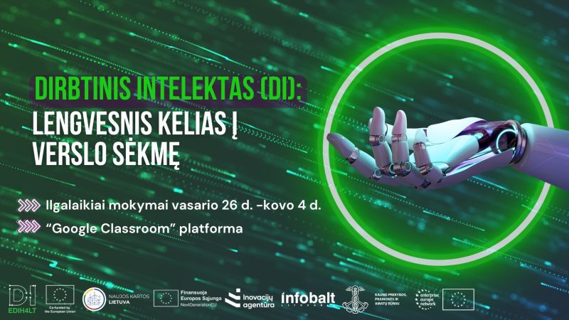 Kviečiame dalyvauti savaitės trukmės nuotoliniuose mokymuose „Dirbtinis intelektas: lengvesnis kelias į verslo sėkmę”, skirtuose mažoms ir vidutinėms įmonėms Vidurio ir Vakarų Lietuvoje.