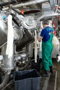 UAB Omniteksas – Kaune įsikūrusi vertikaliai integruota įmonė, kurioje rūbai gaminami „nuo siūlo“. Susitikimo metu kviesime pažvelgti į rūbų gamybą nuo pradžių – matysime, kaip mezgamos medžiagos, kaip maišomi dažai siekiant išgauti norimą medžiagos spalvą, kaip medžiaga yra dažoma, kaip jai suteikiamos specifinės funkcinės savybės, kaip ji džiovinama, testuojama, išdžiovinta keliama į sukirpimo cechą, iš kurio keliauja į automatizuotą siuvimo liniją ir galiausiai virsta mūsų visų dėvimais rūbais.