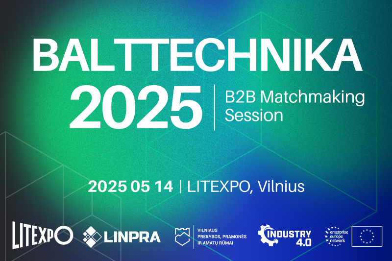 Vilniaus prekybos, pramonės ir amatų rūmai kartu su Lietuvos inžinerijos ir technologijų pramonės asociacija LINPRA, parodų rūmais LITEXPO ir Enterprise Europe Network Lietuva, bendradarbiaudami su tinklo partneriais bei FINEST SCALEUP projektu gegužės 14 d. kviečia Lietuvos įmones dalyvauti tarptautiniame verslo kontaktų renginyje Matchmaking for Industry 4.0.